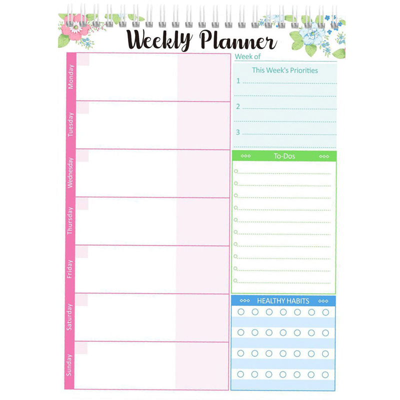 - Weekly planner with priorities, to-do list & healthy habit tracker